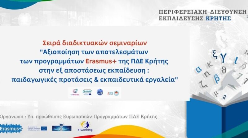 Read moreΗ 3η ενότητα του κύκλου διαδικτυακών σεμιναρίων με τίτλο “Αξιοποίηση των ευρωπαϊκών προγραμμάτων της ΠΔΕ Κρήτης στην εξ αποστάσεως εκπαίδευση