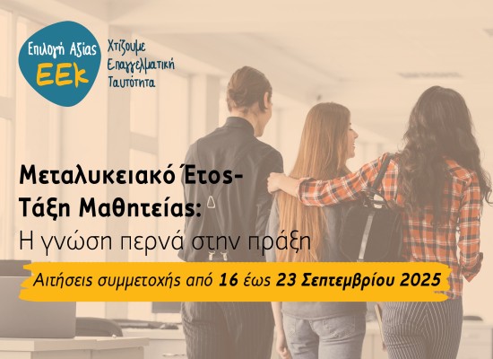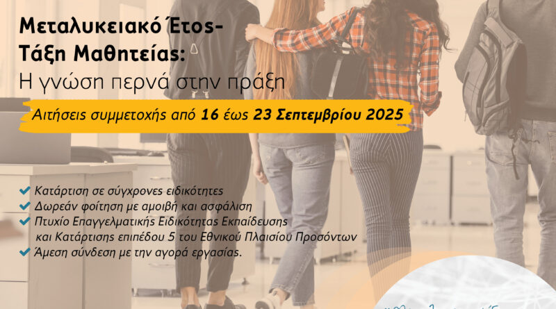 Από την Τετάρτη 05/11/2025 οι ενδιαφερόμενοι για τις Εξετάσεις Πιστοποίησης αποφοίτων του Μεταλυκειακού Έτους – Τάξης Μαθητείας των Επαγγελματικών Λυκείων